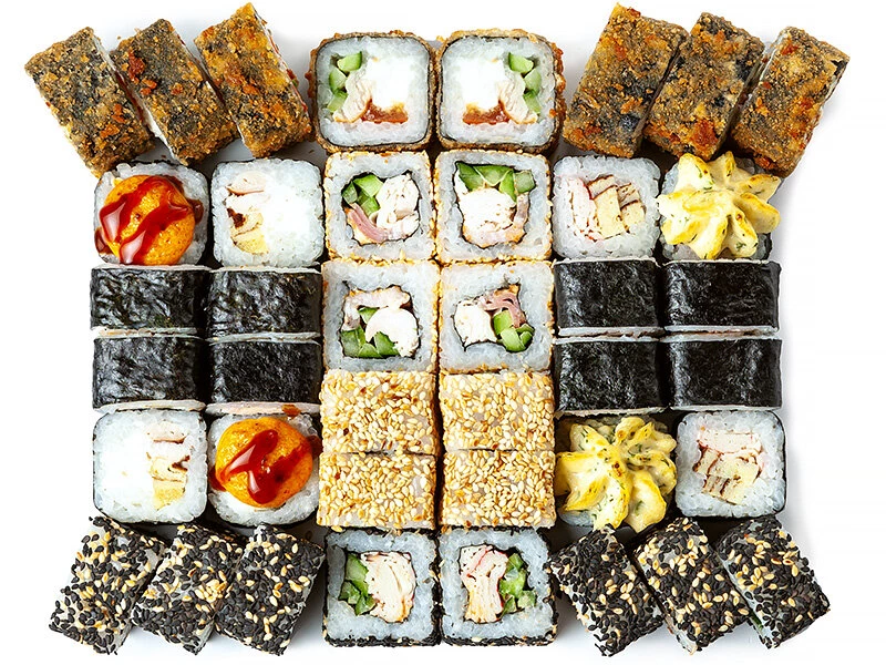 Суховато было немного.. И роллы разложили странновато, подумали, что половину не довезли